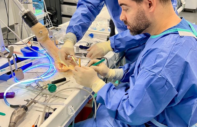 Entre as novidades, o médico destacou a videoartroscopia para cirurgias no pé e tornozelo. Além disso, ele trouxe a SpeedBridge Miss, técnica voltada para lesões no tendão de Aquiles. Esse método utiliza pequenos cortes, o que torna o processo menos agressivo. Dessa forma, o paciente sente menos dor e recupera a mobilidade em menos tempo.